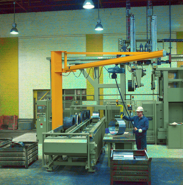 Nos potences pivotantes permettent le levage et le transport facile et rapide de tous types de pièces ainsi qu'une dépose en douceur et avec précision. Elles peuvent être installées aussi bien lorsqu'elles sont installées près des machines d'usinage ou des postes de montage que sur les aires de stockage libres et les zones de chargement. Elles peuvent être installées ; ou encore directement au poste de travail et associées à une grande variété d'appareils de levage.