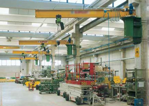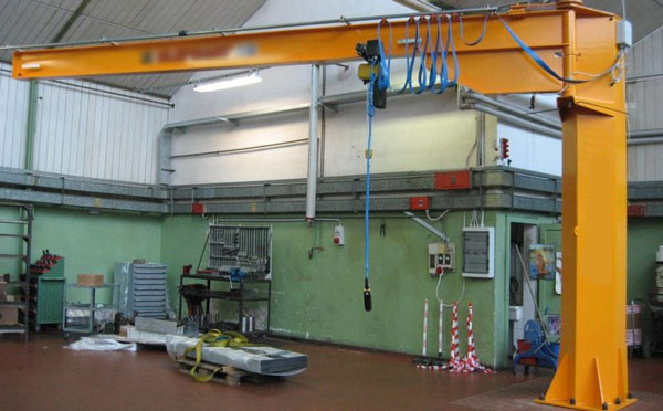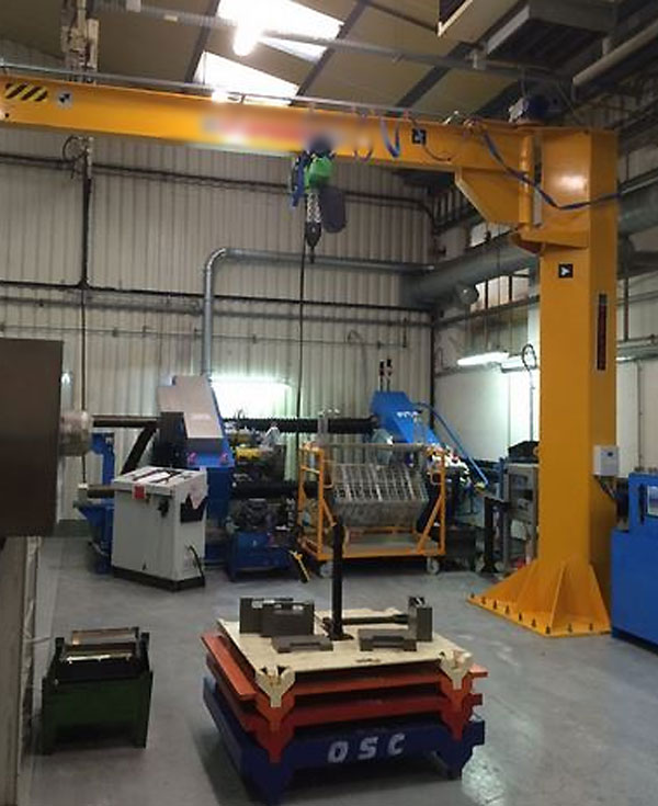 1 potence de levage - Rotation motorisée - Interrupteur cadenassable - Butée de rotation - Palan à chaîne électrique - Capot de protection sur palan et motorisation - Frein de parking - Finition galvanisée à chaud - Charge : 500 kg - Portée : 2.00m