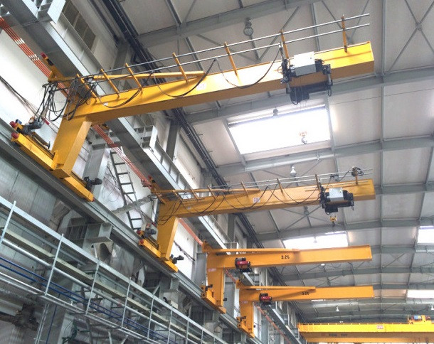 - La potence peut se déplacer longitudinalement le long du rail. Dans le même temps, le palan électrique peut effectuer le mouvement horizontal le long du bras de flèche / porte-à-faux et la tâche de levage vertical.