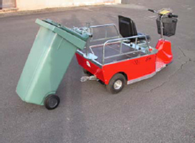 C’est un tracteur électrique qui permet un déplacement sur remorque ou en train de bennes à déchets.