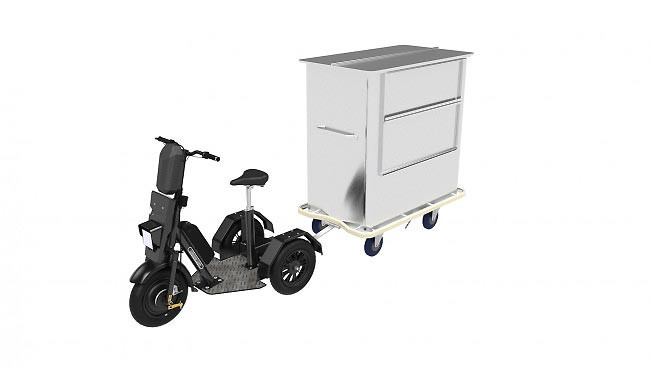 Ce tracteur autoporté est une solution utilitaire spécialement développée pour les professionnels. Ce triporteur puissant et compact permet de tracter des poubelles, des rolls ou encore des caissons déchets. Ce tracteur pousseur dispose d'une motorisation puissante de 3000 W. Cette motorisation lui permet notamment de tracter jusqu'à 500 kg. Les performances de ce triporteur vous permettent aisément de gérer les activités de vos copropriétés ou les besoins de votre industrie !