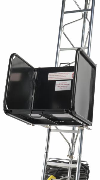 monte charges est d’une hauteur de 10 m, équipé d’un plateau standard acier pour transporter du matériel volumineux.