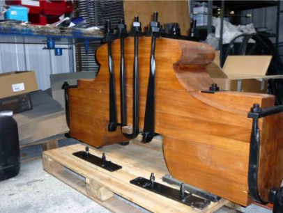 Jougs en bois de chêne taillés à la main en respectant les caractéristiques des bois, ils sont calculés en fonction de la cloche et du beffroi et sont équipés de :
