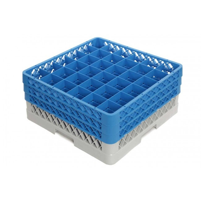 Les 36 compartiments de 73 x 73 mm accueillent parfaitement vos verres standards. Cette configuration maximise l'efficacité de votre lave-verres industriel en traitant simultanément une grande quantité de verrerie.