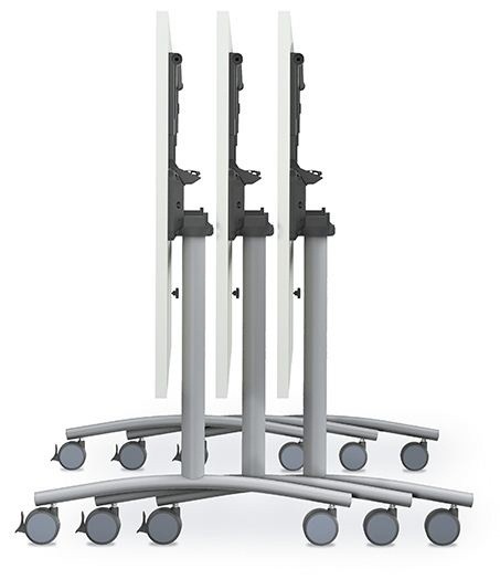 Piètement métallique équipés de 4 roulettes ø 75 mm, à rotation 360° dont 2 pourvues de freins.
