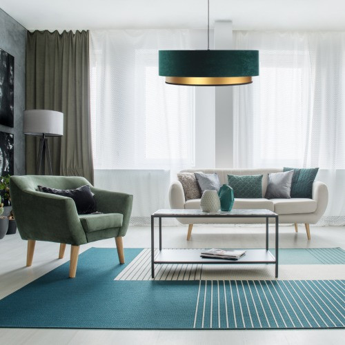 Cette suspension en coton et double cylindre or est un luminaire élégant et polyvalent qui apporte une touche de sophistication à votre espace.