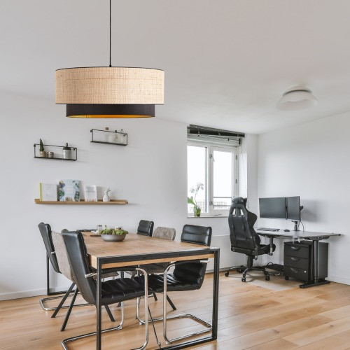 La suspension bi-matière à double cylindre est un luminaire au design moderne et chaleureux, idéal pour éclairer et décorer votre intérieur.