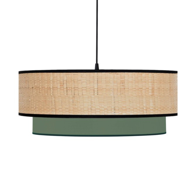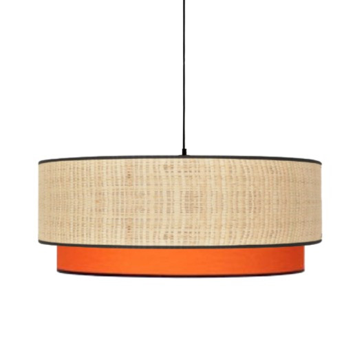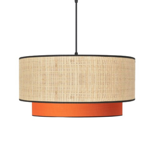 Cette suspension bi-matière crée un éclairage apaisant grâce à la combinaison du raphia et du coton.