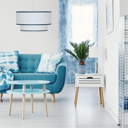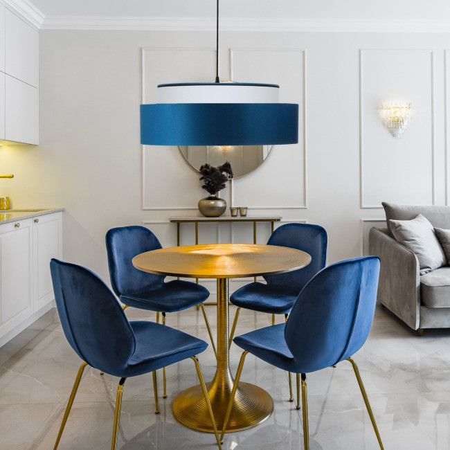 La double suspension en bleu et blanc est une solution d'éclairage élégante et polyvalente.