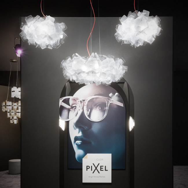 Le design Clizia Pixel est inspiré de la nymphe grecque reniée par le soleil qui se transforme en héliotrope. De plus, elle est fabriquée en Cristalflex® et Lentiflex® de la marque SLAMP et intègre un système d'ancrage magnétique qui facilite l'installation et entretien.