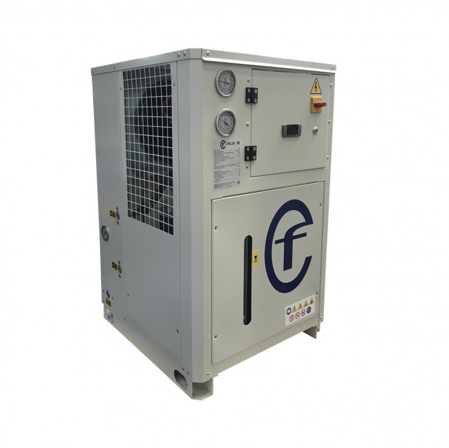 Petit refroidisseur compact à condensation par air avec : – Réservoir d’eau en acier inoxydable ouvert ou fermé – Evaporateur coaxial immergé en cuivre – Gaz réfrigérant R410a ou R134a selon modèle – Pompe 3 à 7 bars – Remplissage manuel de l’eau, niveau d’eau du réservoir – Interrupteur de niveau et de débit – Eau négative jusqu’à -5°C et température ambiante jusqu’à -10°C – By-pass interne calibré – Différentes options possibles – Equipé du système PLUG&PLAY (prêt à être connecté) et EASY MAINTENANCE