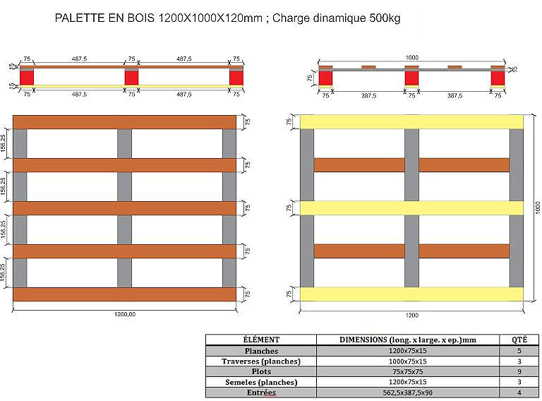 - Dimensions (long x large x ep) : 1200 x 1000 x 120 mm - 5 planches supérieures