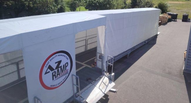 Plateforme logistique, plateforme stockage, plateforme manutention, rampe avec protection pluie et plateforme, plateforme avec quai niveleur.