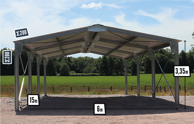 90m² de surface couverte pour le stationnement de vos véhicules ou le stockage de votre matériel