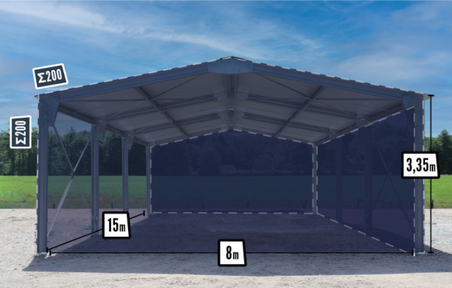 90m² de surface couverte pour le stationnement de vos véhicules ou le stockage de votre matériel