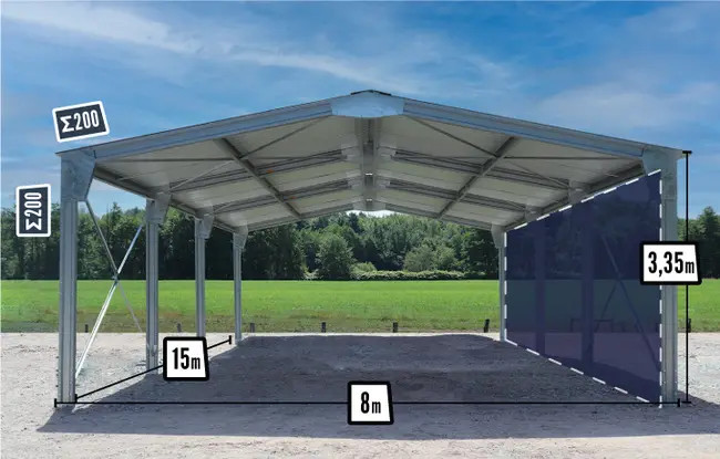 Robustesse de la structure grâce aux profils Σ : la plus grande dimension sur le marché des abris, plus rigide qu'un profil C
