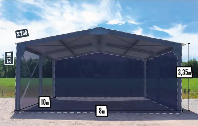 Robustesse de la structure grâce aux profils Σ : la plus grande dimension sur le marché des abris, plus rigide qu'un profil C