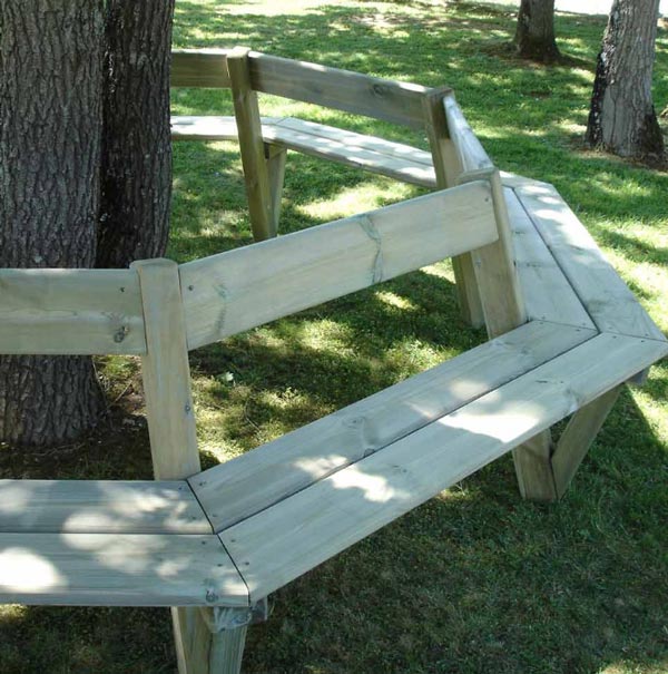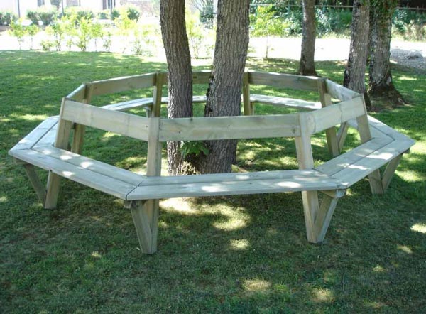 Ce banc tour d'arbre octogonal convient dans les espaces collectifs :