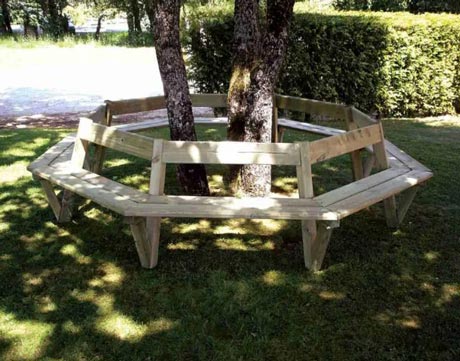 Conçu pour les collectivités, parcs, jardins publics et espaces urbains, il permet de créer un point de repos central autour d’un élément naturel.