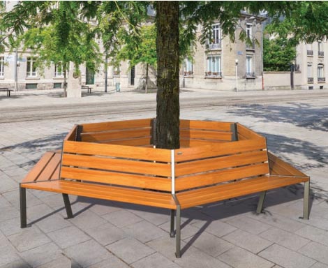 Réf. TC : 479364756Banc tour d’arbre en acier bois 2000 3368 x 2930 450 Acajou Gris Procity 182