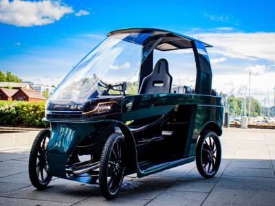 Ce quadricycle professionnel équipé de son module pour le transport de passagers redéfinit le transport en ville en combinant le confort d’une voiture et la flexibilité d’un vélo électrique.