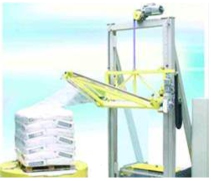 Filmer des palettes sur 5 faces de quincaille, ferrure, carton de sabot,... pour les envoyer en chantier par camion (plateau). Les palettes fini ne sont pas des rectangles bien propres. Il peut y avoir des hauteurs différente ainsi que des formes biscornus (ferrure d"assemblage de charpente). Le film doit maintenir et protégé des intempéries.