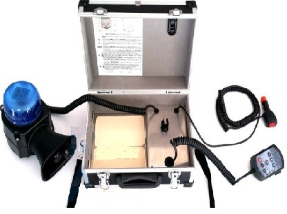 - Dimensions du combiné gyrophare-sirene avec fixation magnétique : 180 mm (h) x 130 mm (L) x 210 mm (l)