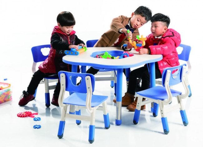 JUK 073 est une table modulable accompagnée de son bac de rangement permettant aux enfants de la maternelle d’exprimer pleinement leur créativité.