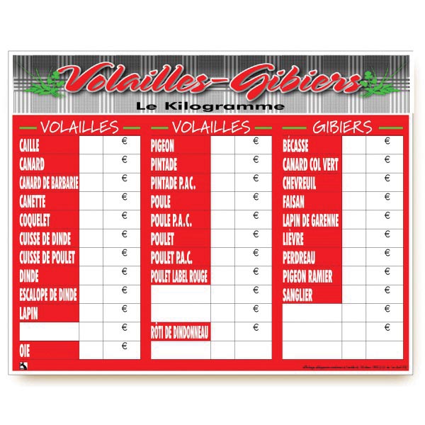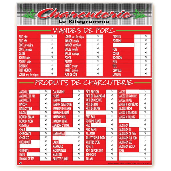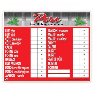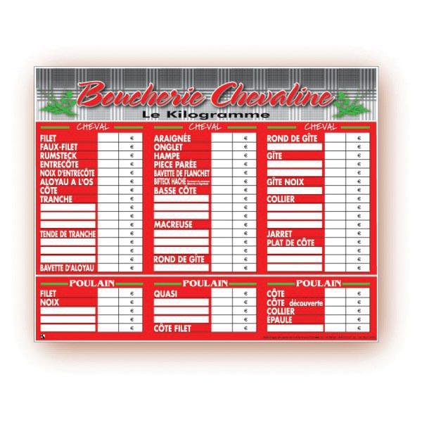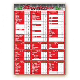 Demandes de devis pour Panneau d'affichage prix boucherie - 50 x 70 cm à 96 x 72 cm
