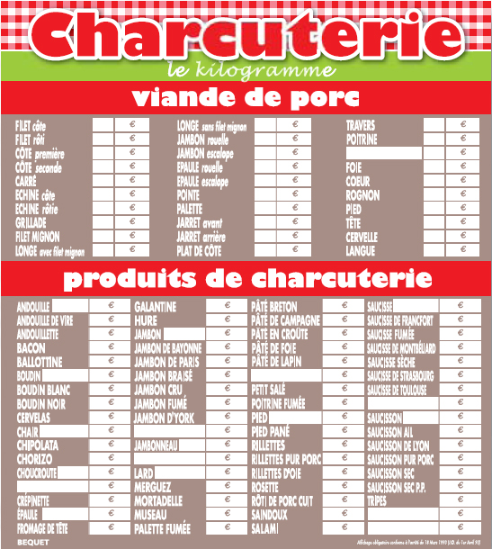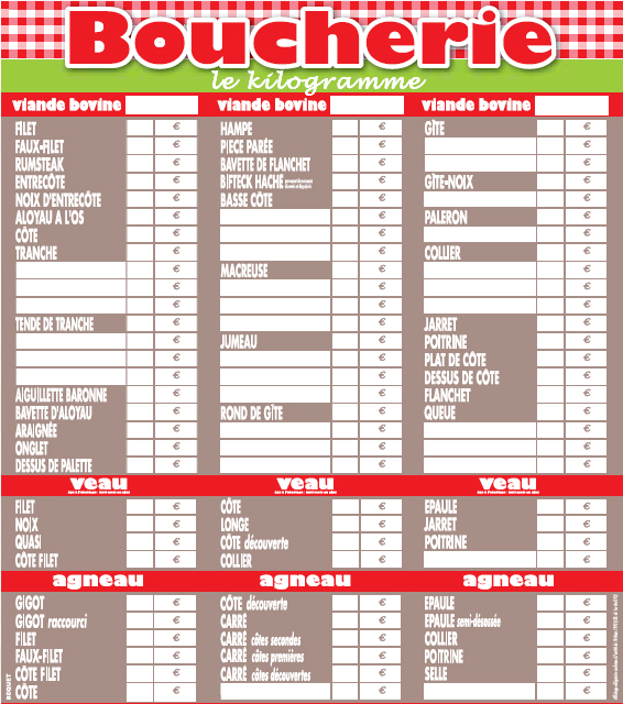Notre panneau d'affichage prix viande répond parfaitement aux exigences légales d'affichage dans les commerces de bouche.