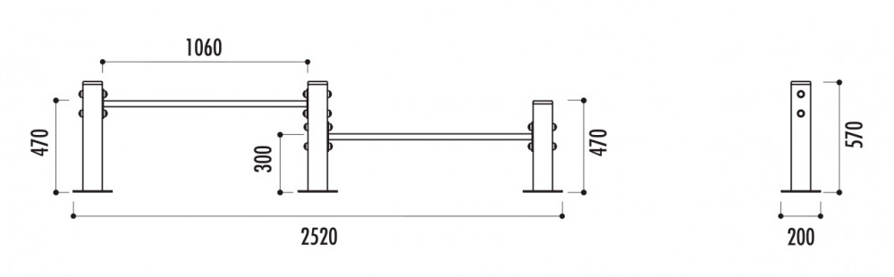 Barre de flexion Horizontales - L.2520 mm - Haut.de chute 47 cm