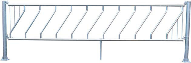 Les barres obliques disposent d'un bon compromis entre le cornadis et le libre-service à 2 barres horizontales pour jeunes animaux.