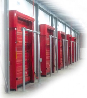 Une structure en acier et un tablier en PVC haute résistance, ce type de portes est adapté pour la séparation de zones à température négative ou positive et assure une parfaite isolation tout en empêchantl’entrée de l’airchaud à la zone réfrigérée, sans être gêné par le passage de biens et de personnes lors des opérations de manutention.