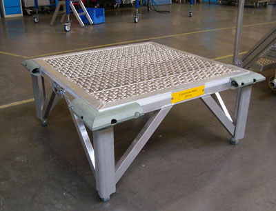 Optimisez l'accès à la soute de votre hélicoptère EC 120 avec cet escabeau à plateforme en caillebotis.
