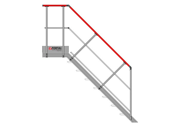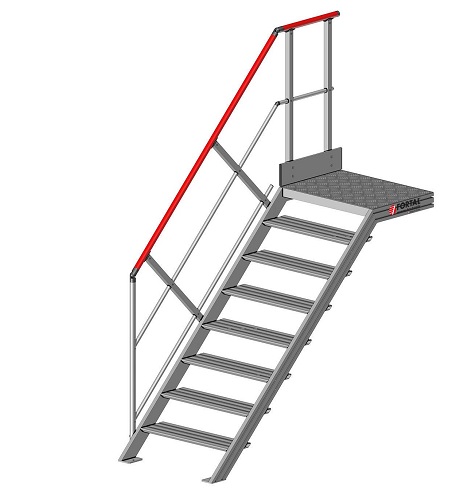 Escalier droit à palier - inclinaison 45° - Longueur du palier 600 mm