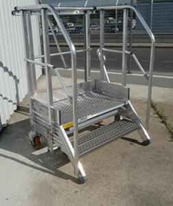- Escabeau mobile - hauteur 495 - pour travail sur transmission hélicoptère léger type W4 en structure aluminium 100 x 30 mm.