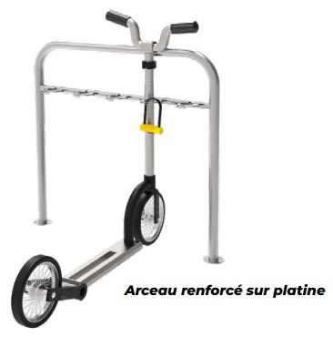 Ce range trottinettes 5 places existe en trois modèles : renforcé sur platine, simple sur platine et support mural.