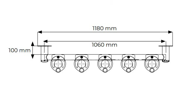 Le support mural présente une longueur de 1180 mm, ce qui permet d’aligner les 5 points de verrouillage le long d’une paroi.