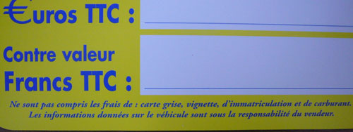 J"aimerais savoir les différent type de fiche descriptive a accrocher sur nos véhicules et comment se passe les commandes (prix, lot ... )