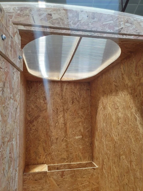 Notre cabine sanitaire sèche extérieure est entièrement montée sur une ossature en bois OSB3, offrant résistance à l’eau et longévité.