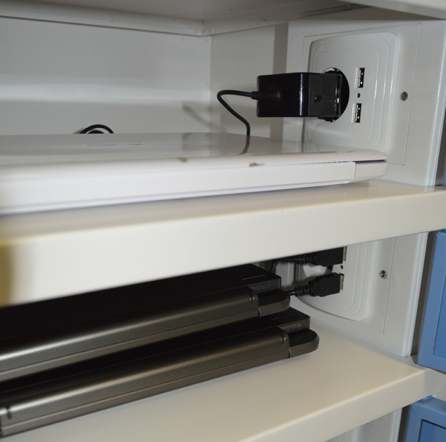 2 prises USB (5V, 2.1A) et 1 prise 220V dans chaque casier, avec LED