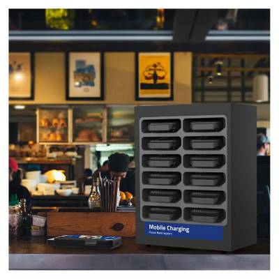 Conçue pour accueillir jusqu’à 12 batteries externes, elle garantit que vos utilisateurs disposent en permanence de power banks USB prêtes à l’emploi pour la recharge de leurs smartphones et tablettes.