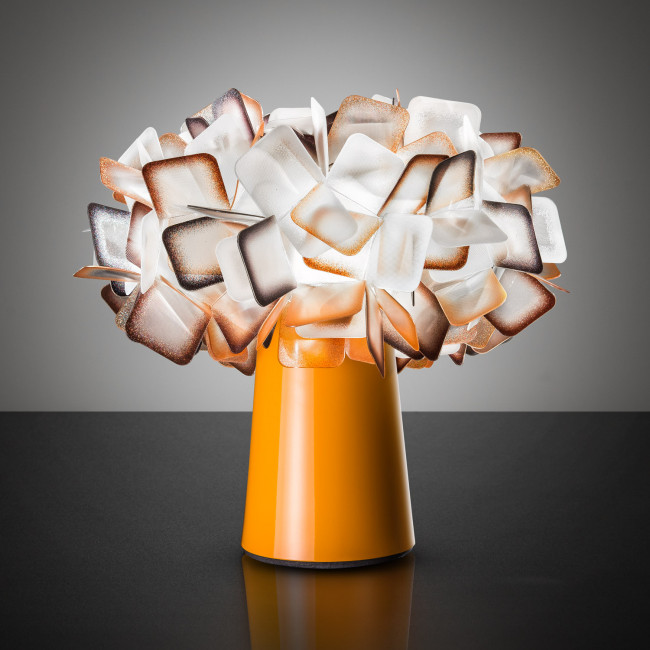 La Lampe de Table Clizia Orange SLAMP présente un design moderne mais élégant qui se distingue par ses formes irrégulières encastrées en parfaite équilibre et reflets qui captent et diffusent la lumière. Il s'agit d'un design fait main par la prestigieuse marque italienne "SLAMP", une société dédiée à l'éclairage design.