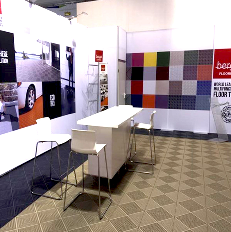Pour Juin, On monte un stand et on cherche des dalles sol extérieur sur une surface de 35m² . coloris: gris.