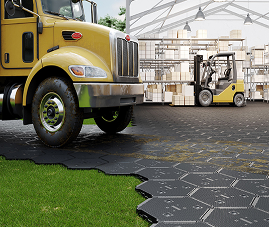 Ces dalles ultra-résistantes permettent de stabiliser un sol meuble (gazon, sable, neige) afin de pouvoir supporter des charges lourdes.