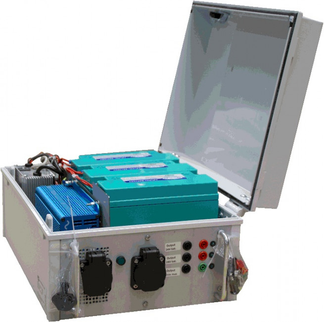 - Intègre les batteries et tous les périphériques (convertisseurs, chargeur, etc.)