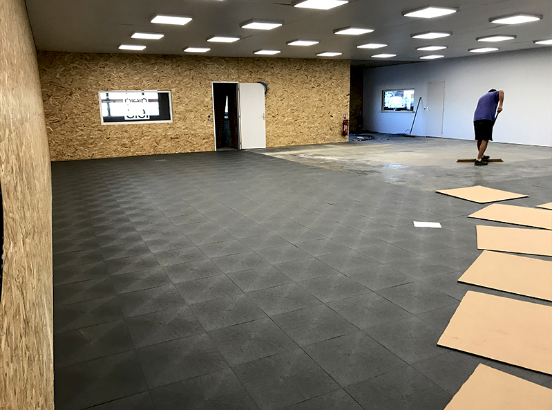 Revêtement sol d"un entrepôt servant de magasin (friperie et meubles d"occasion)