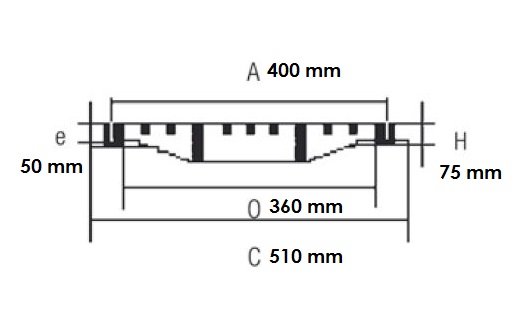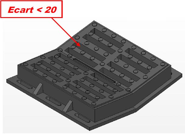 Cette plaque d'égout PMR à grille concave est adaptée aux personnes à mobilité réduite avec un écart < 20 millimètres.