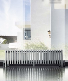 Radiateur en fer tubulaire à positionner au sol idéal pour les espaces sous les fenêtres et le verre, ce radiateur est également disponible en version murale.