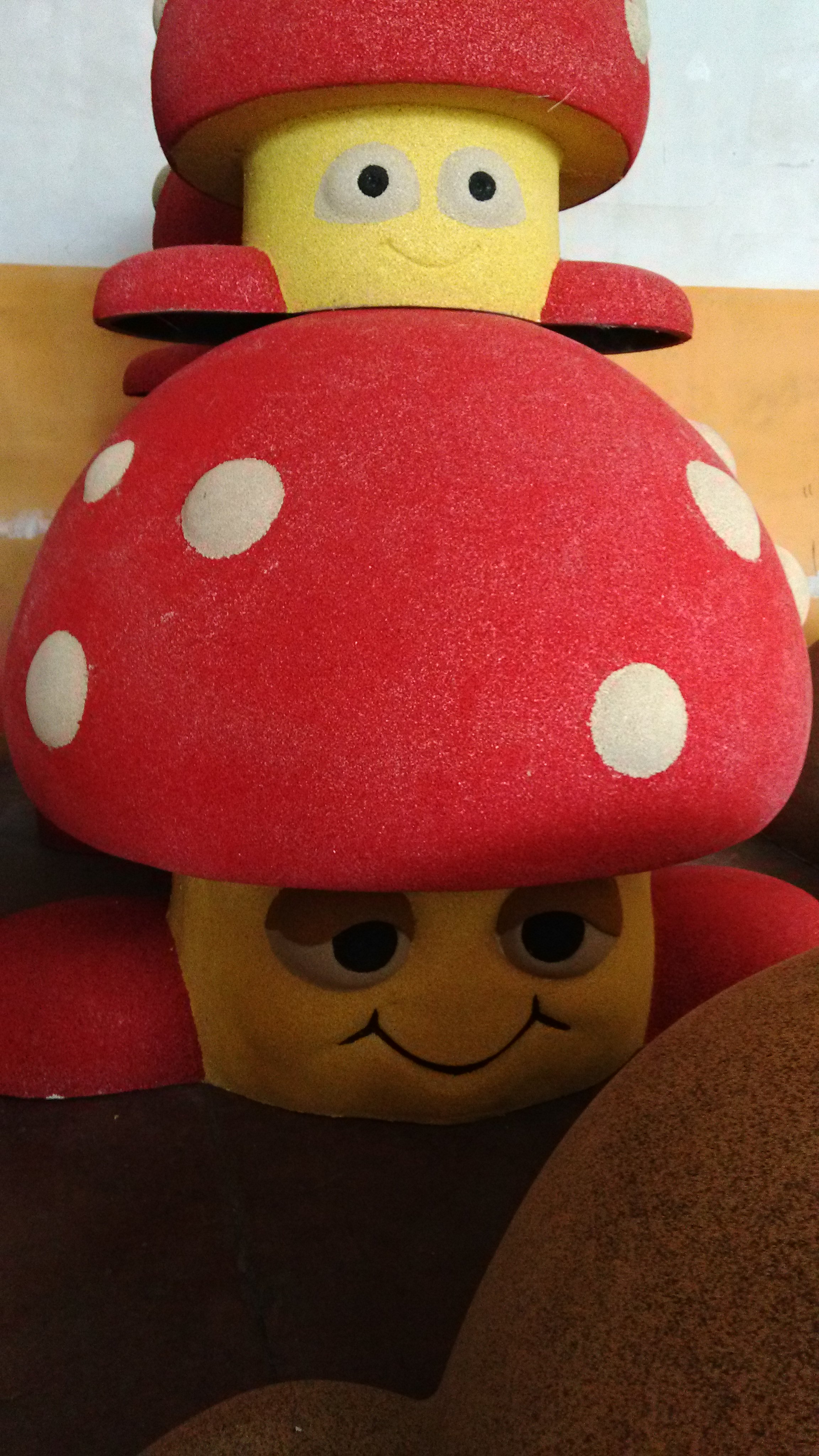 - Structure en caoutchouc (modèle Champignon) en 3D. Haut niveau de finition (yeux, nez, bouche, pattes, décorations, etc..) des figures.